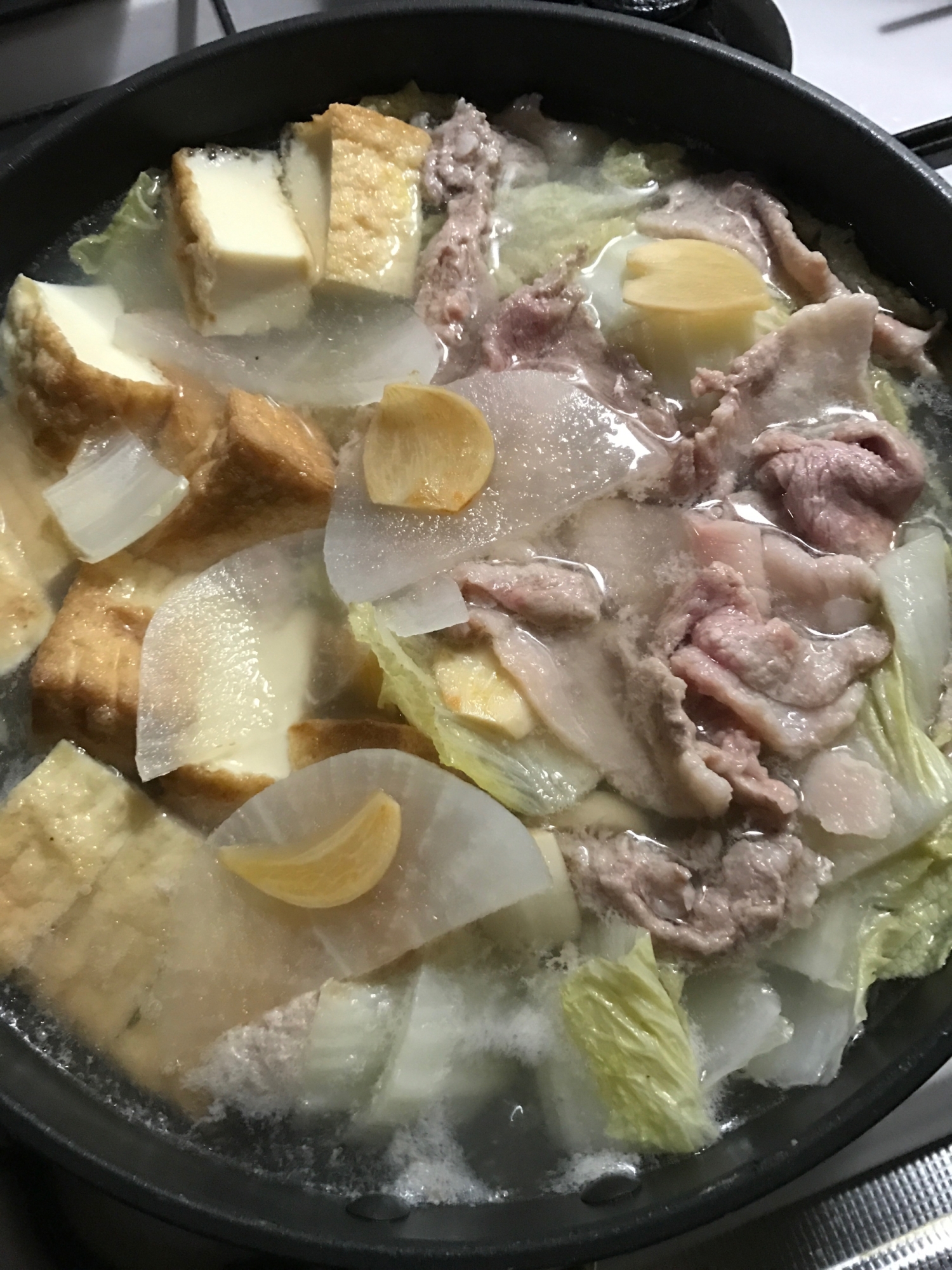 中華だしで 厚揚げと白菜 豚肉のニンニク鍋 レシピ 作り方 By ボンド子 楽天レシピ